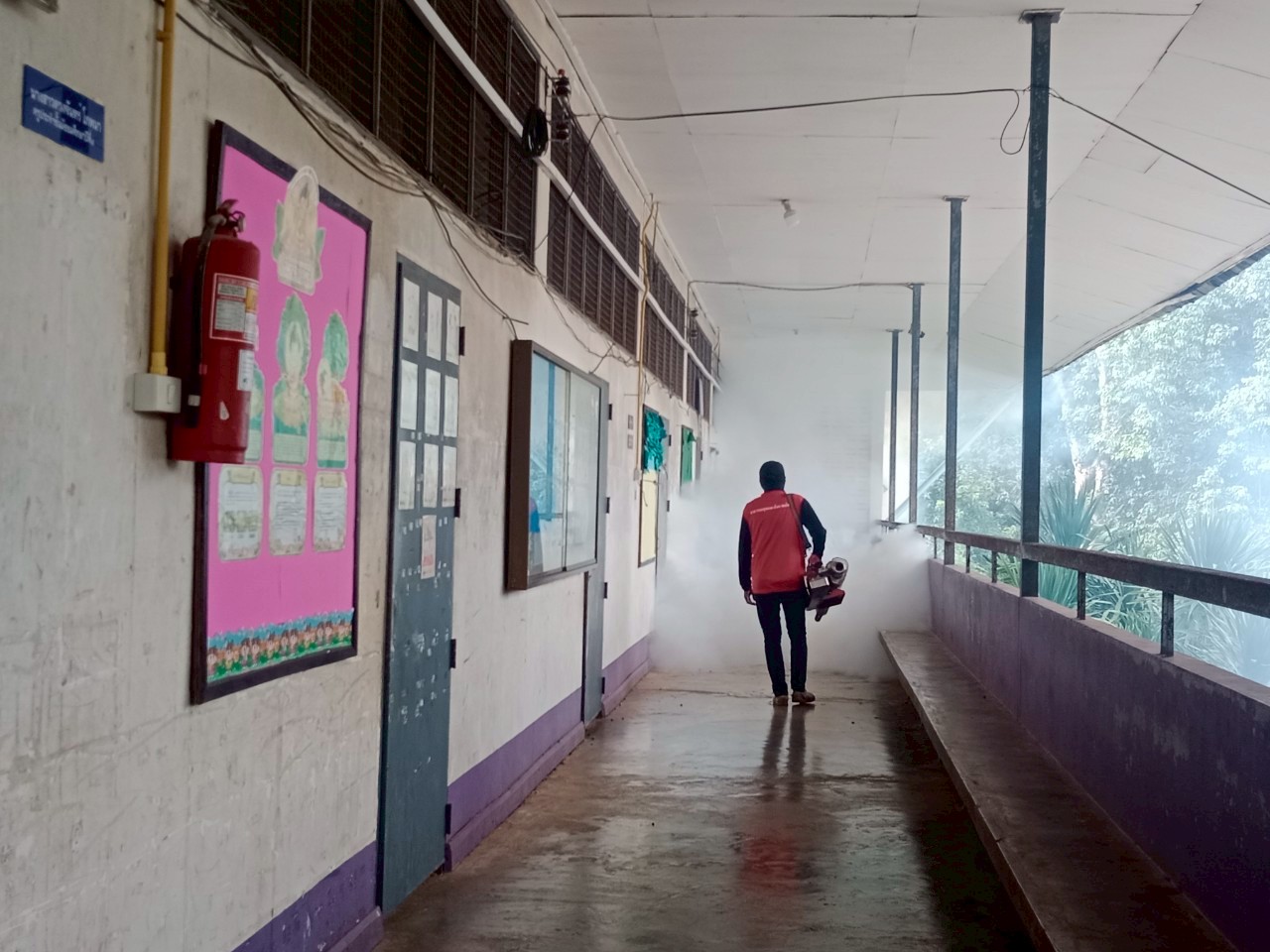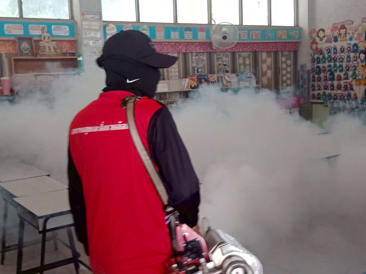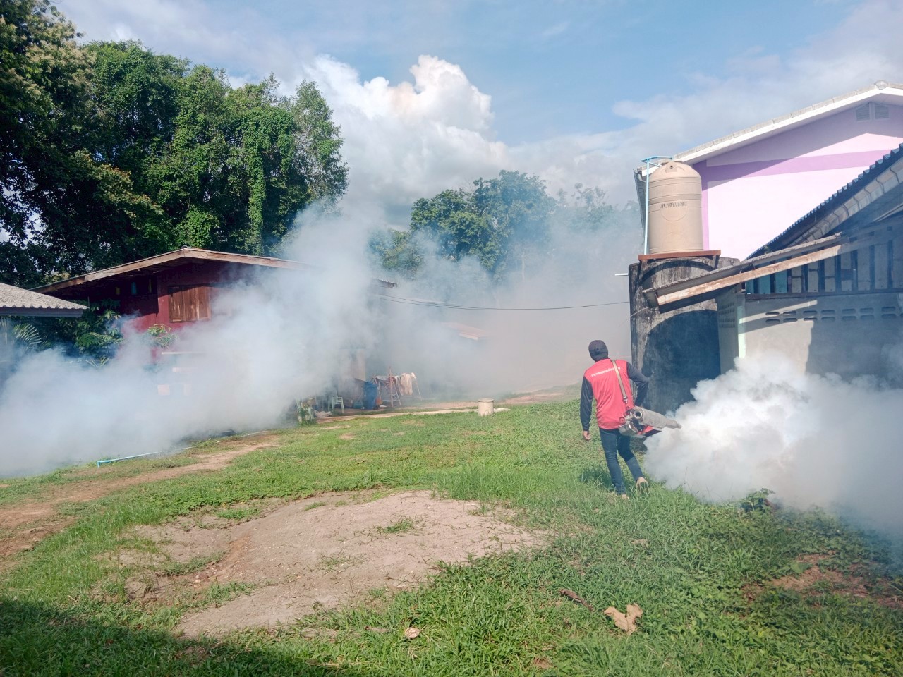 อบต.ผาตั้ง เข้าฉีดพ่นหมอกควันป้องกันไข้เลือดออก
