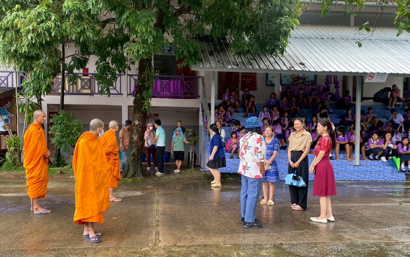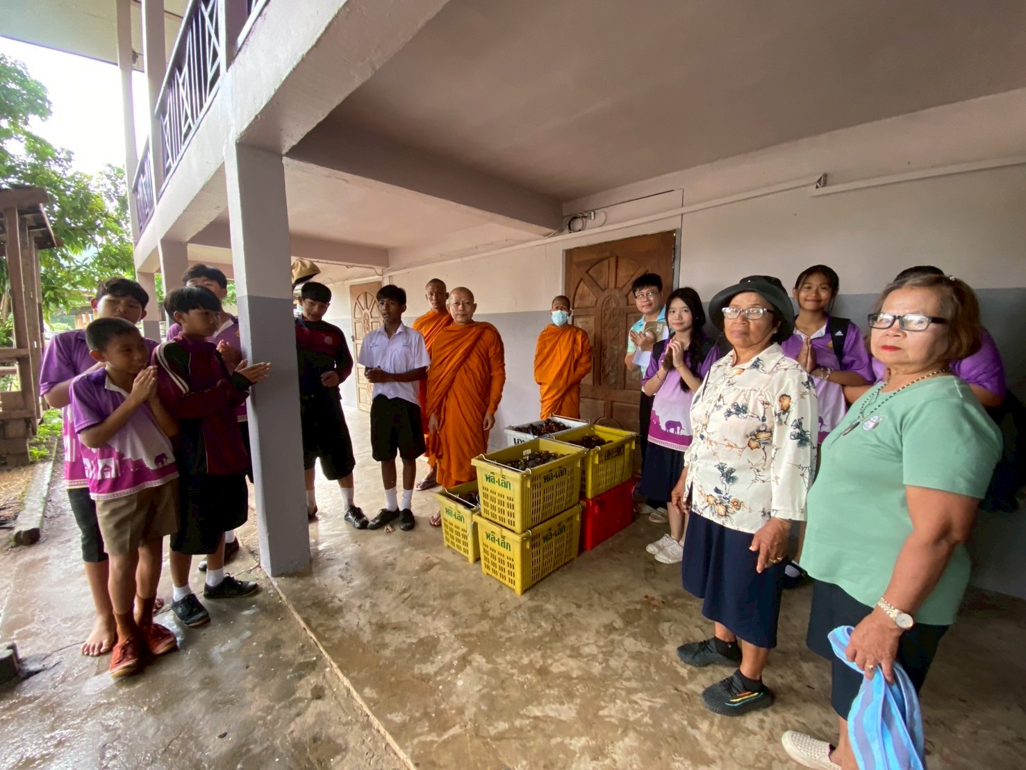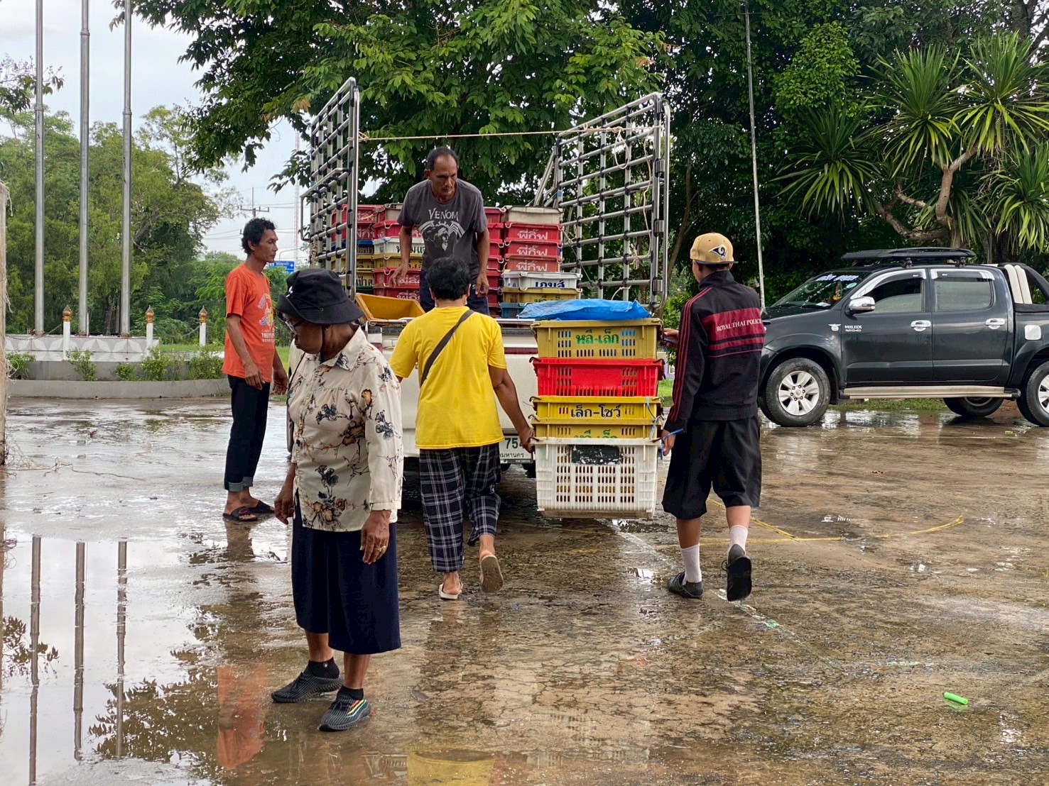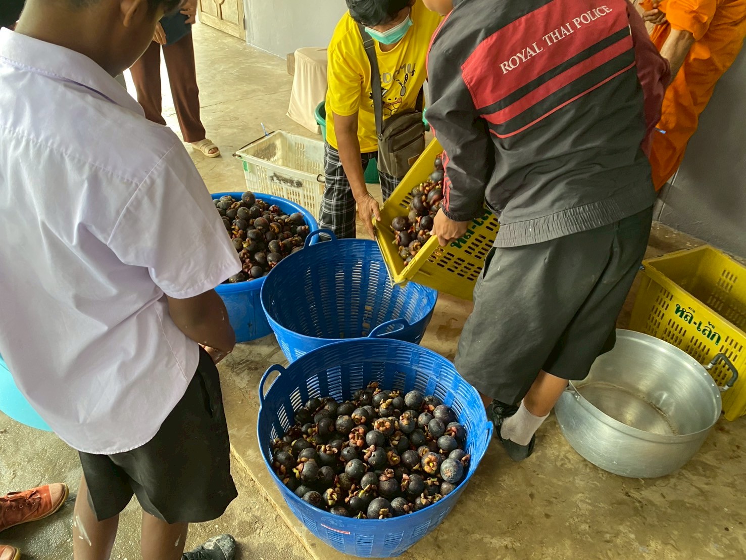 พระอาจารย์วิรัช อำเภอแกลง จังหวัดระยอง นำผลไม้มาแจก